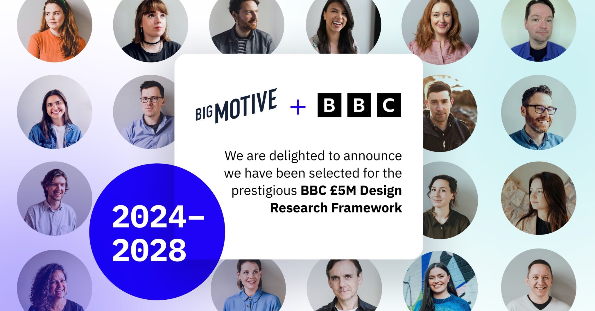 Over the next four years, Big Motive and the other successful agencies will work closely with the BBC to tackle some of the organisation’s most significant challenges. The Design Research roster aims to leverage cutting-edge research and design expertise to enhance the BBC’s diverse array of brands, events, content and digital products.