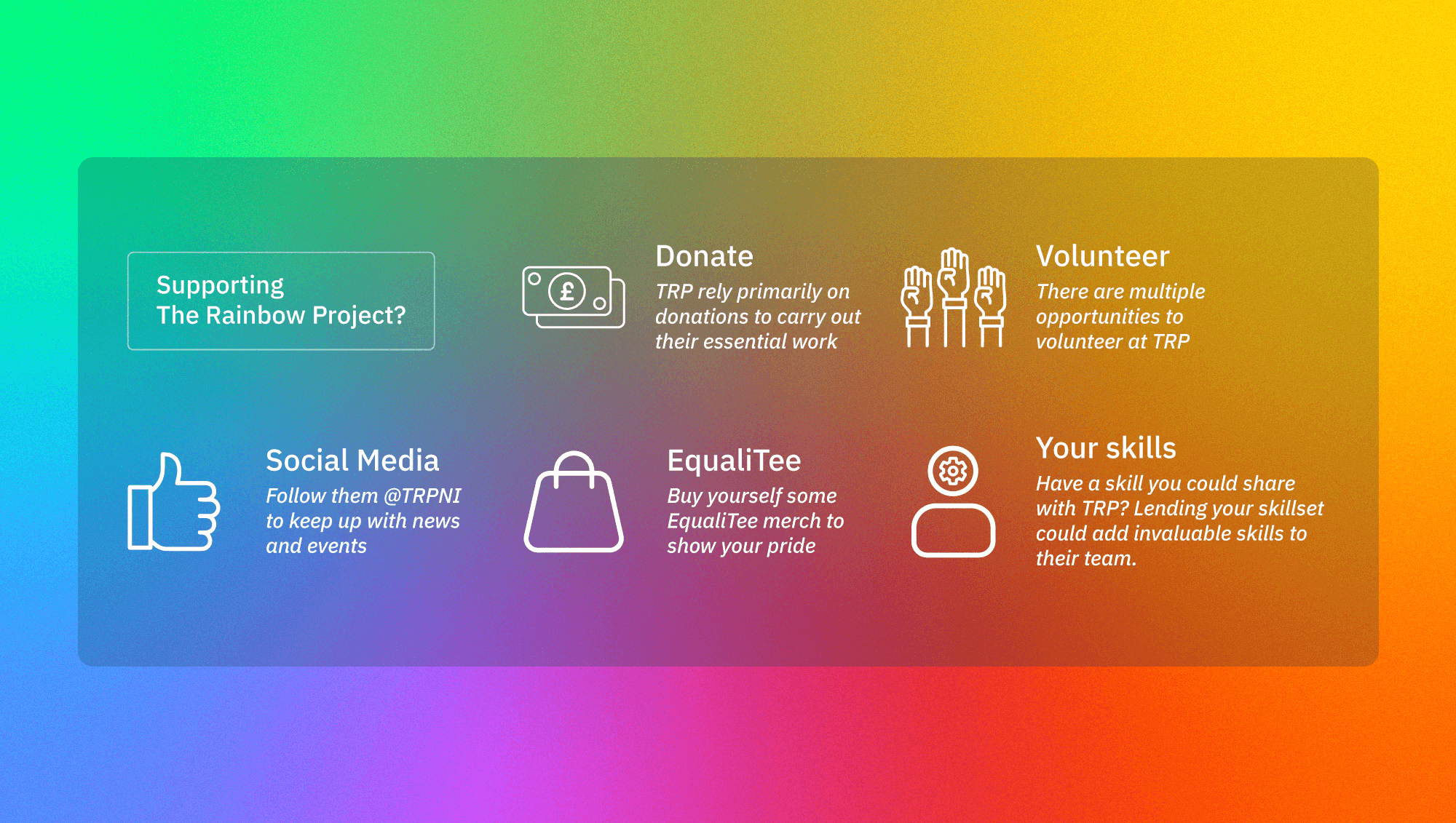 www.rainbow-project.org@TRPNI – on Instagram and Twitter