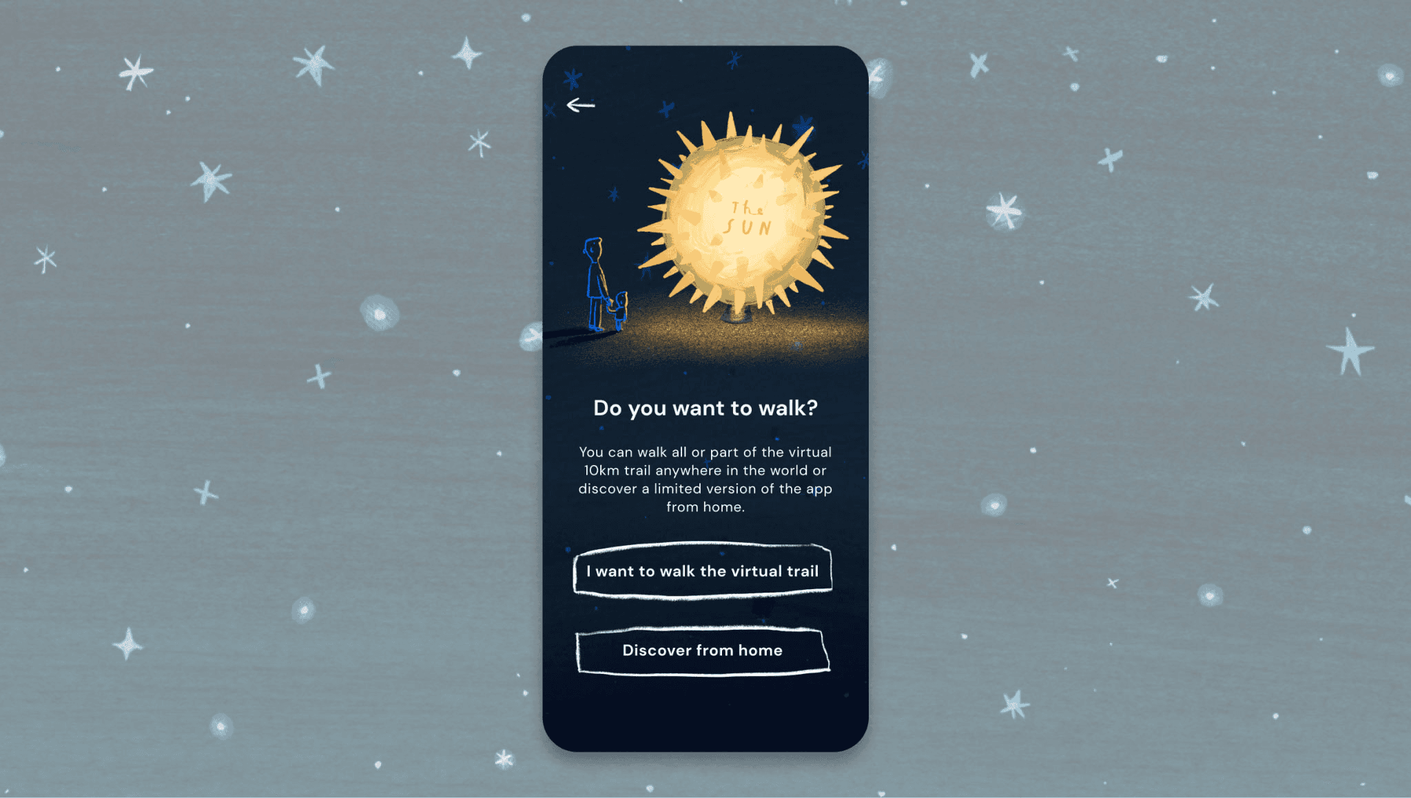 Our challenge was to design an app that would enhance the trail’s physical sculpture as well as creating a fully immersive experience that could be accessed from anywhere in the world by anyone.