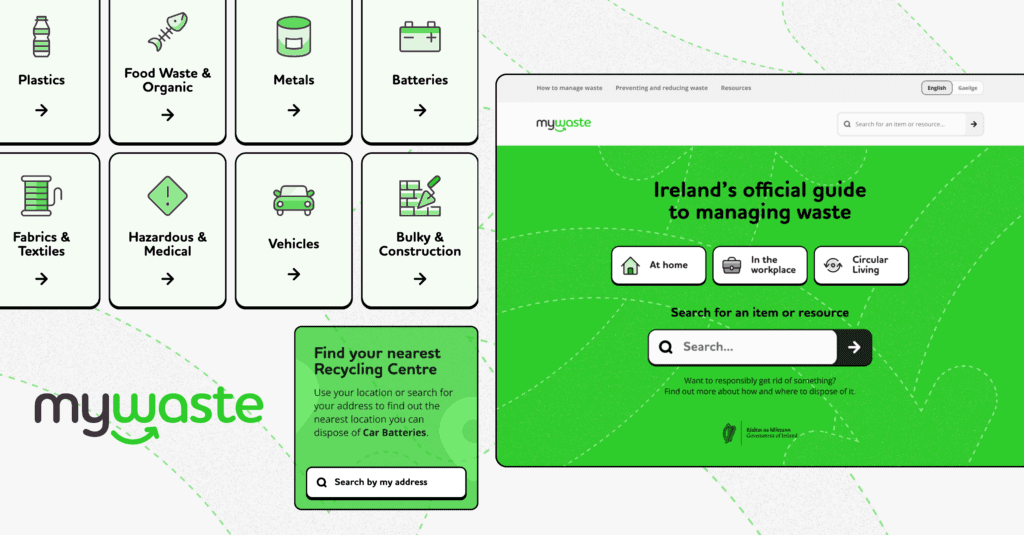 As we started working with MyWaste, Ireland’s Regional Waste Management Offices, we audited the accessibility potential of the brand. Relatively-simple changes and additions were explored and agreed upon early. This enabled the high-contrast colours, scalable typography and keyboard-friendly navigation then implemented to create an inclusive digital experience.